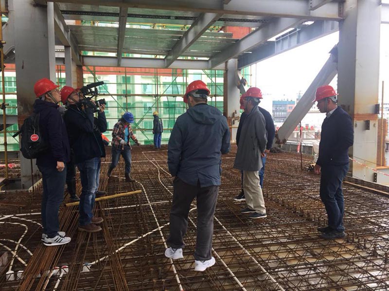 (電視臺在工地進(jìn)行拍攝)