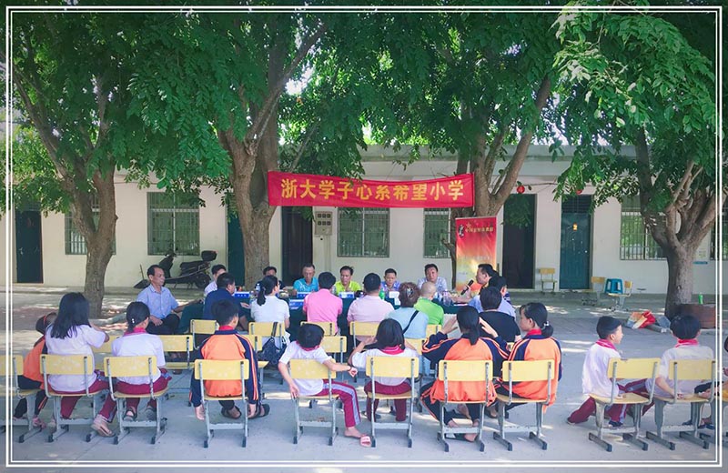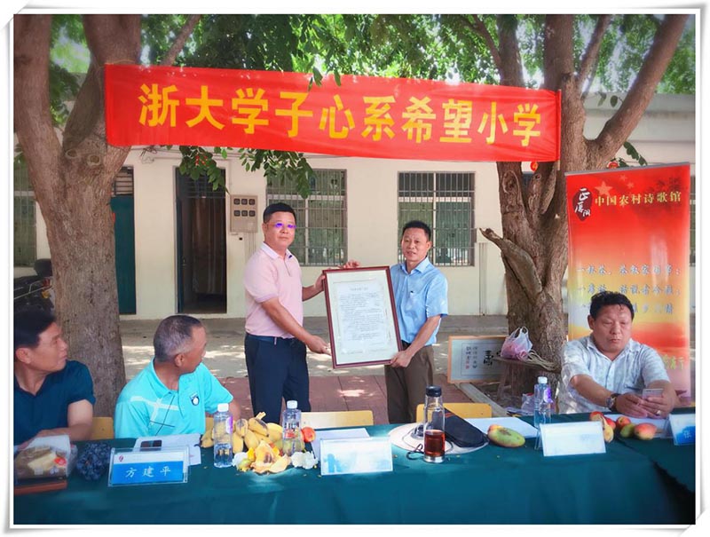 2018年6月3日,浙大鋼構領(lǐng)導方建平、陳煒來(lái)到儋州沙表頭希望小學(xué)并參加鄉村詩(shī)歌館籌備洽談會(huì )。