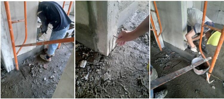 (6)灌漿:安裝校正好的墻板待一天后,用水泥砂漿(1:2)再加建筑膠調成聚合物漿狀填充上、下縫和板與板之間的接縫,如圖4。