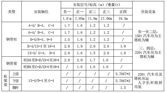 用于各層鋼構件卸貨及吊裝的汽車(chē)吊選用詳見(jiàn)本文:表 4.2
