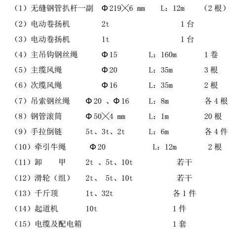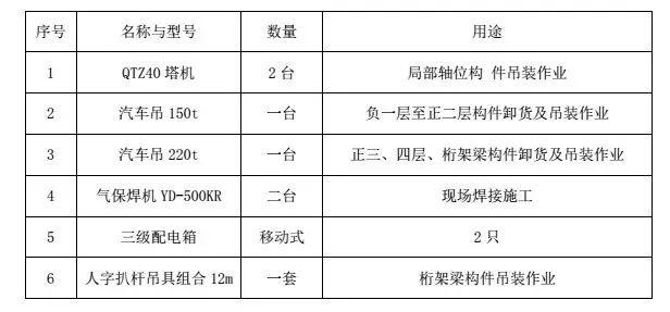 本次吊裝施工施工主要機具見(jiàn)下表: