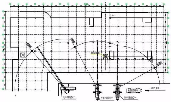 (2)汽車(chē)吊站位二:適用于 4-4軸至 9-4軸區域各層鋼構件的轉運和吊裝。