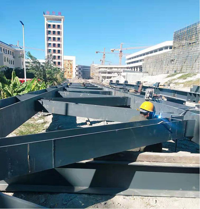 桁架地面拼裝焊接,根據設計規范值要求起拱