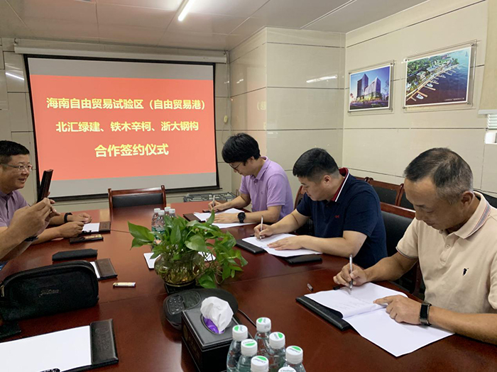 7月22日,浙大鋼構與北匯綠建、鐵木辛柯在?谂e行座談并簽署合作協(xié)議,三方將建立融洽、緊密、全面的合作伙伴關(guān)系,攜手為推動(dòng)海南自貿港建筑裝配化事業(yè)的發(fā)展,特別是裝配式鋼結構建筑、海洋鋼結構的大力推廣,以及一帶一路產(chǎn)品及服務(wù)輸出等貢獻更大的力量。