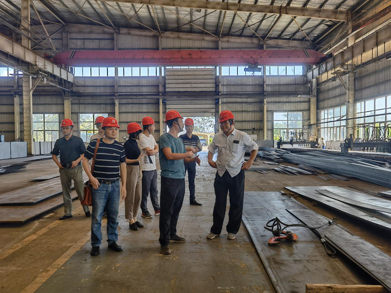 會(huì )后,考察團小組來(lái)到廠(chǎng)區加工生產(chǎn)基地參觀(guān),劉總將各工廠(chǎng)的規模、生產(chǎn)能力、鋼結構的全生產(chǎn)周期等情況向考察小組詳細講解。雙方針對結構形式、墻體材料、施工工藝與工期、鋼柱與鋼梁原材料供應情況、寬鋼管柱的加工、采購流程等方面進(jìn)行交流探討。