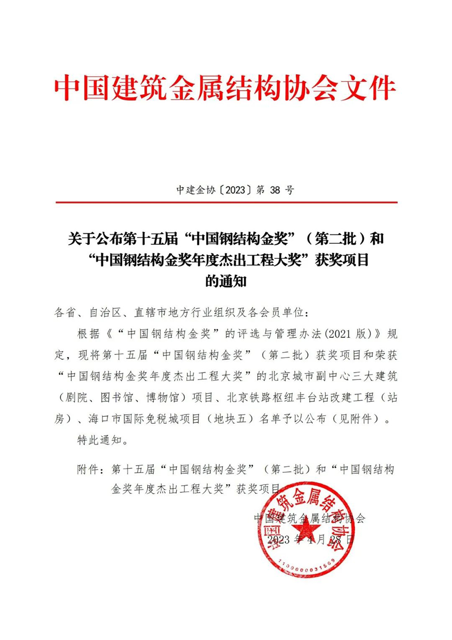 一分耕耘一份收獲,中國鋼結構金獎是鋼結構工程領(lǐng)域的最高質(zhì)量榮譽(yù),同時(shí)也是我國鋼結構工程領(lǐng)域的“中國品牌”。此次獲獎是對我司施工水平、建筑能力、工程質(zhì)量的高度肯定,浙大鋼構也將繼續砥礪前行,嚴守質(zhì)量安全,創(chuàng )優(yōu)質(zhì)工程,鑄就浙大鋼構裝配式住宅一流品牌。